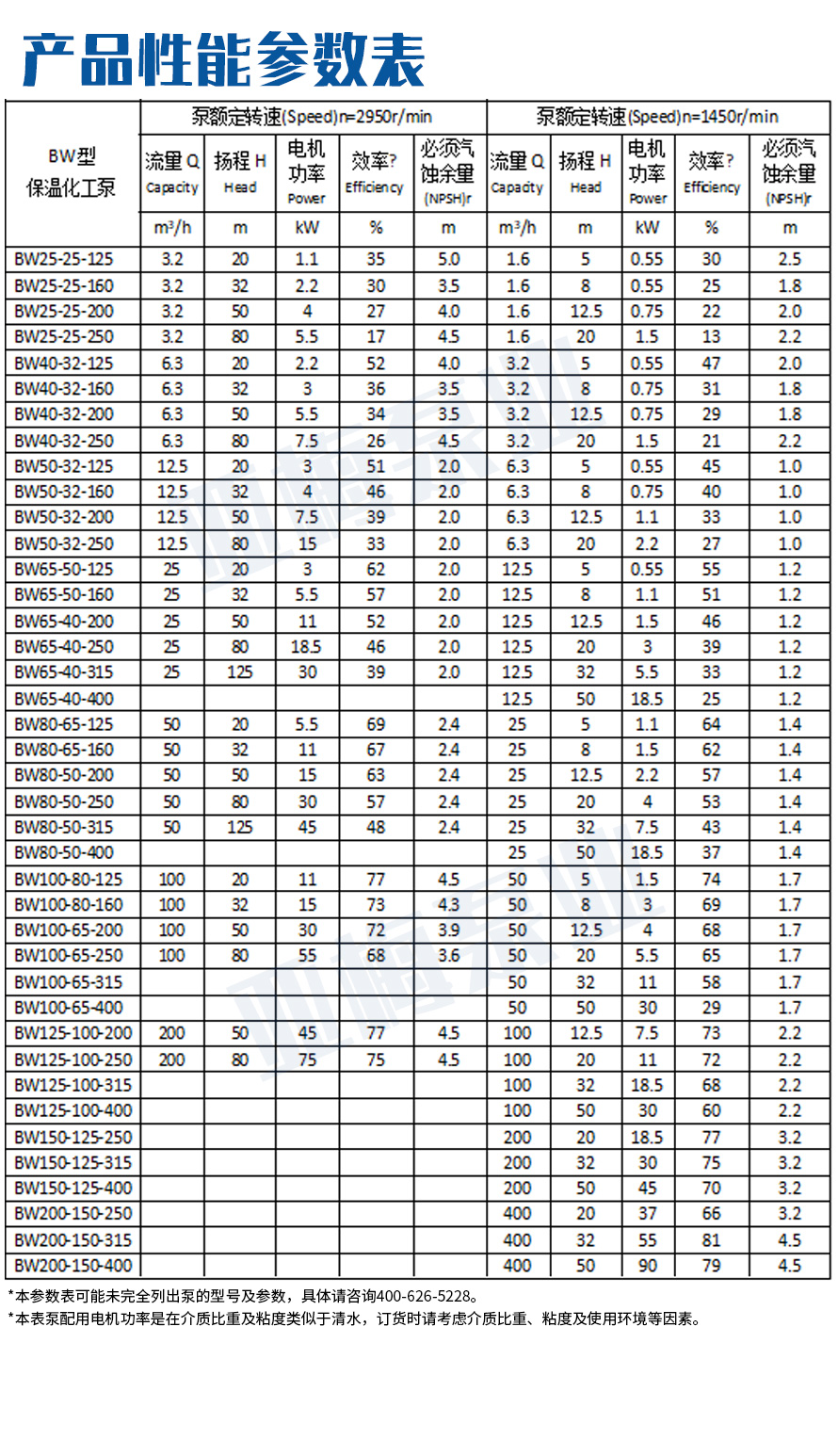 BW系列化工保溫泵是一種帶保溫夾套的單級單吸臥式離心泵,它是在一般化工泵的基礎上改進而成的,主要適用于輸送溫度低于凝固點時易結晶、凝固的介質,或介質需要保持一定溫度的情況下使用。